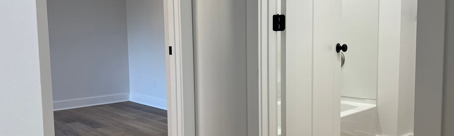 The primary bedroom suite is carefully planned and constructed with many modern-day conveniences for unique living needs. A large walk-in closet and custom storage options, soft close pocket door enhances the primary bathrooms daily functionality. The large double vanity includes soft close drawers and convenient storage with uniquely positioned electrical outlets. High functionality coupled with significant luxury fit & feel.